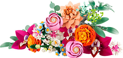 Квіти LEGO® — набір містить 15 збірних стебел квітів, серед яких є ромашки, волошки, евкаліпт, бузина, троянди, жовтці, цимбідіум, дзвоники й жоржина