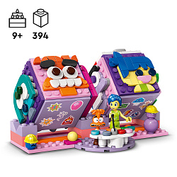 До набору входять 2 кубики, коженз яких має місце для маленьких скарбів, 9 табличок із емоціями, підставка для демонстрації кубиків, фігурки мініляльок Радості й Тривожності LEGO ǀ Disney від Pixar з відповідними кольоровими кульками для запам'ятовування, а також фігурки працівників р озуму Майстра й Марджі LEGO ǀ Disney в капелюхах.
