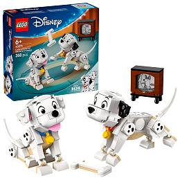 Конструктор має безліч ігрових можливостей і містить 2 цуценят-далматинців з класичного діснеївського фільму 101 далматинець, а також іграшкову кістку й маленький телевізор з кубиків.