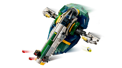 У прекрасний подарунок серії Star Wars™ для дітей входять 3 мініфігурки LEGO: Джанго Фетт, озброєний 2 бластерними пістолетами й реактивним ранцем, юний Боба Фетт й Лама Су. Також є сервісний візок, який можна використовувати для переміщення зорельота під час гри або як підставку для створення фантастичного декору в перервах між іграми.